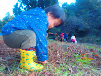 まずはリースに飾り付ける木の実を拾いにみんなで森へしゅっぱーつ!