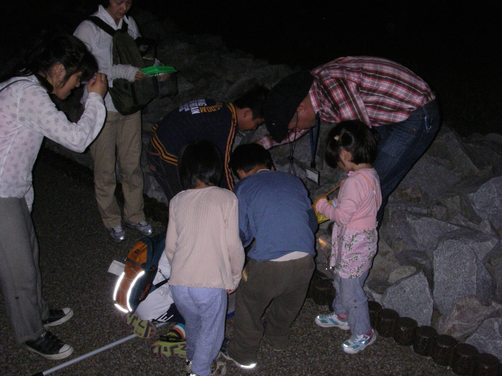懐中電灯で足元や草むらを照らしてみると・・・
