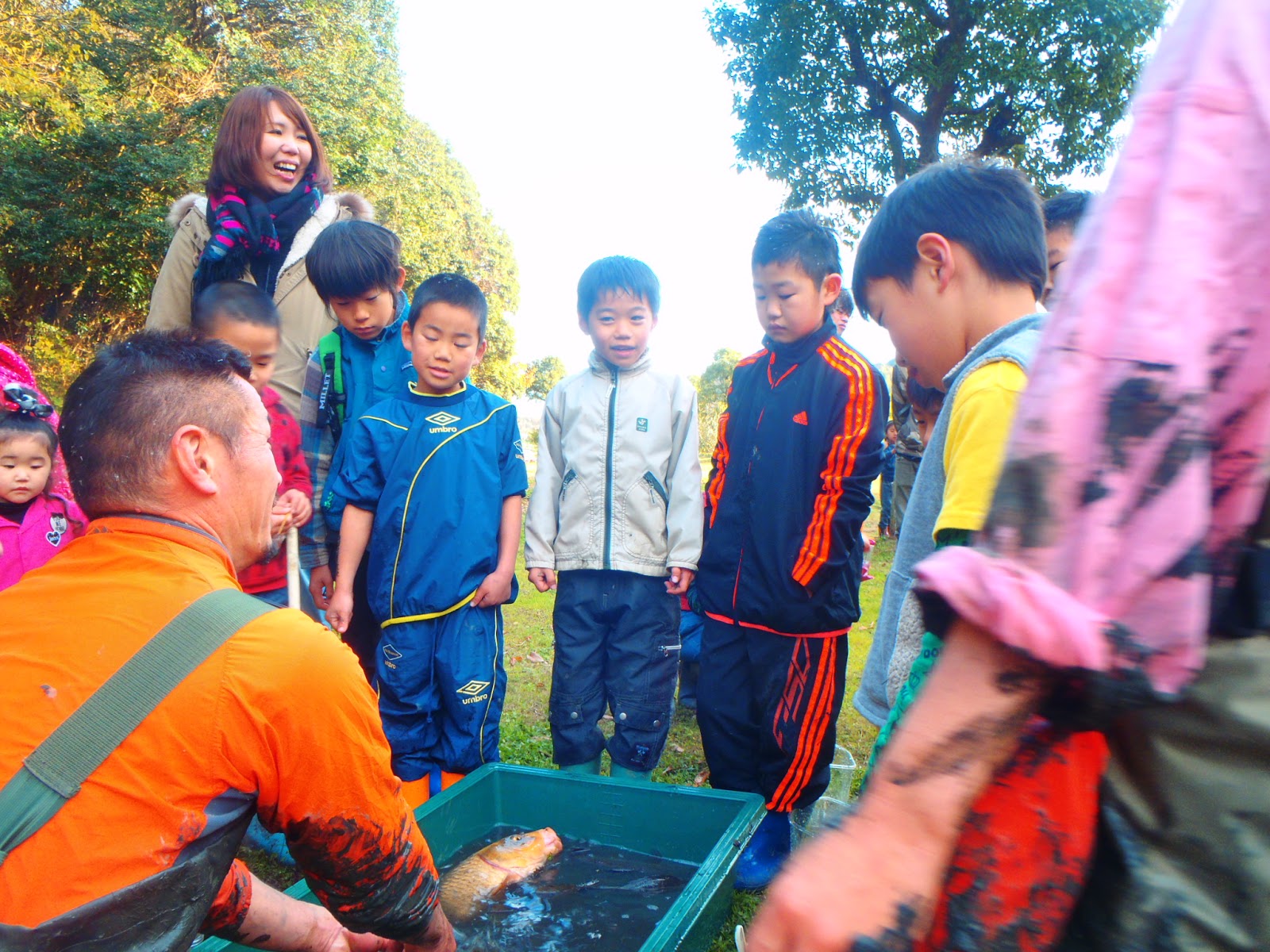 大きな金色の鯉もいました!「すご!でかい!」