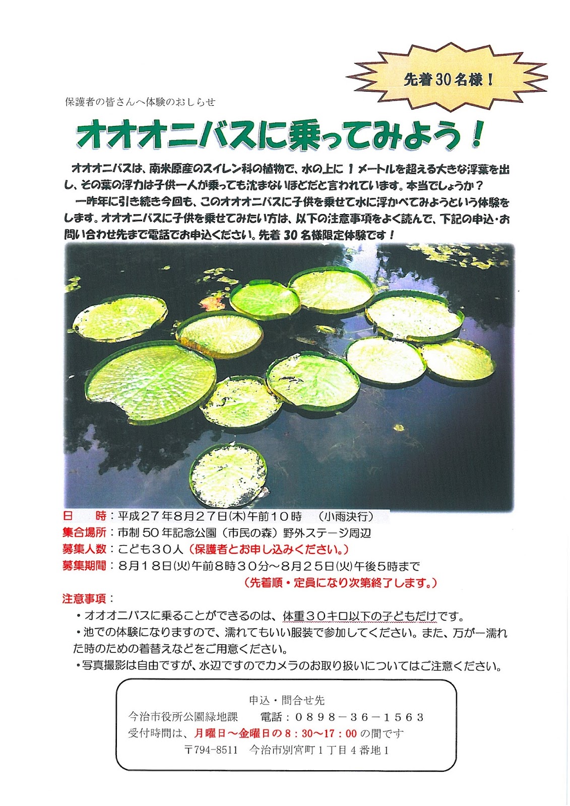 申込み電話番号 : 0898-36-1563(今治市公園緑地課)