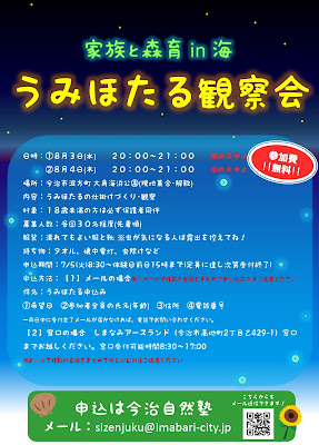 持ち物:タオル、懐中電灯、虫除け(必要な方)