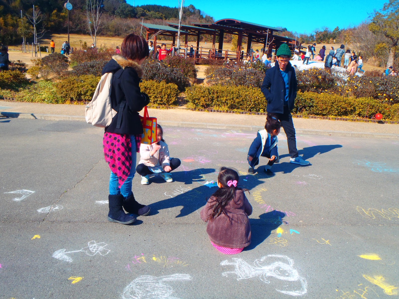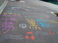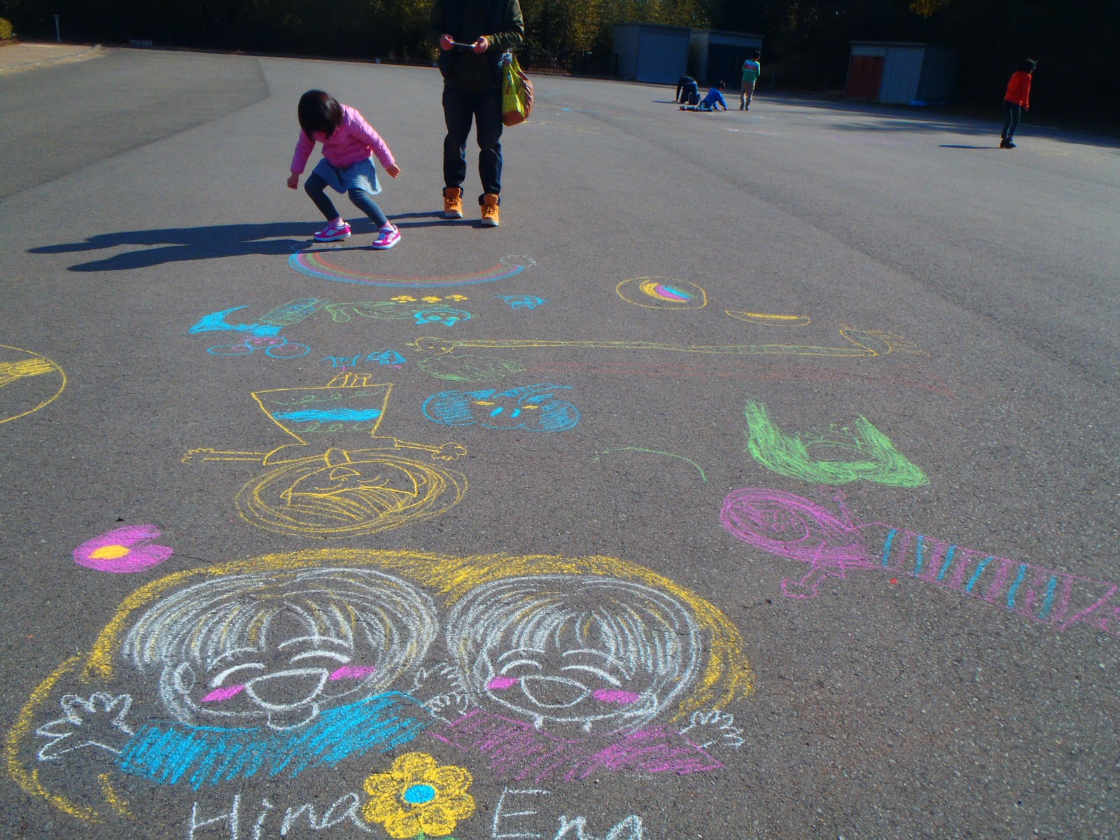 アスファルトにチョークで好きなだけ描けるところってなかなかないですよね^^