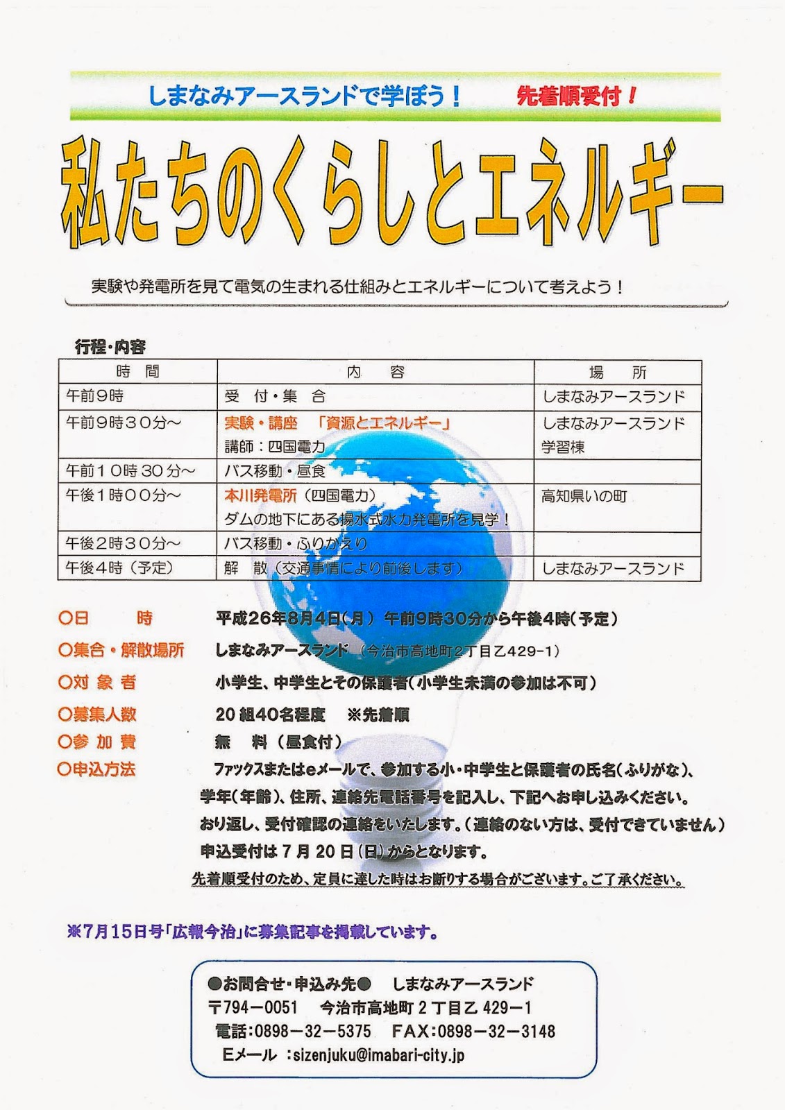 日時は8月4日(月)9時~ しまなみアースランド学習棟集合