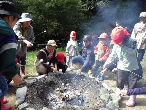 マシュマロやウインナーなど焼き物をしたり、火起こしなども体験できます☆