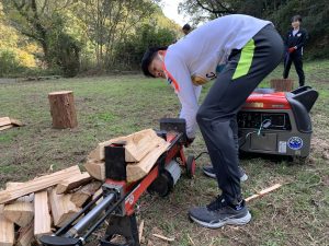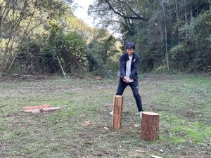今月のボランティア活動「アースボヤージュ」のミッションは…… ズバリ、『薪割り(まきわり)』です!