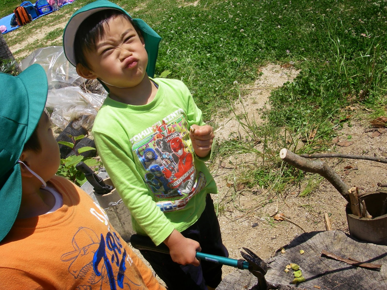 ウメの実を拾ってトンカチで叩き割り、匂ってビックリ!