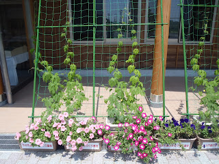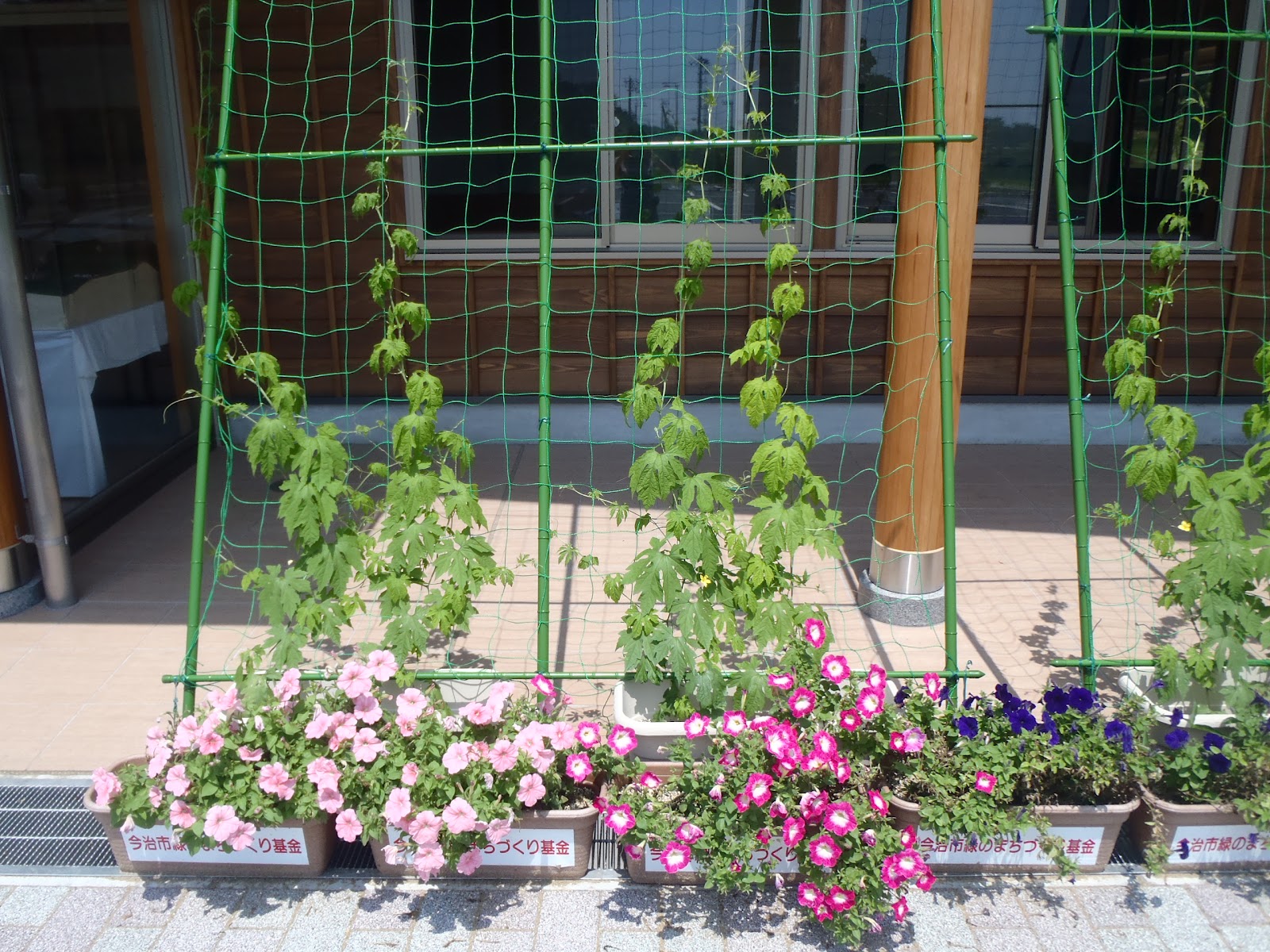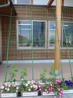 グリーンカーテンのゴーヤがぐんぐん伸びています。