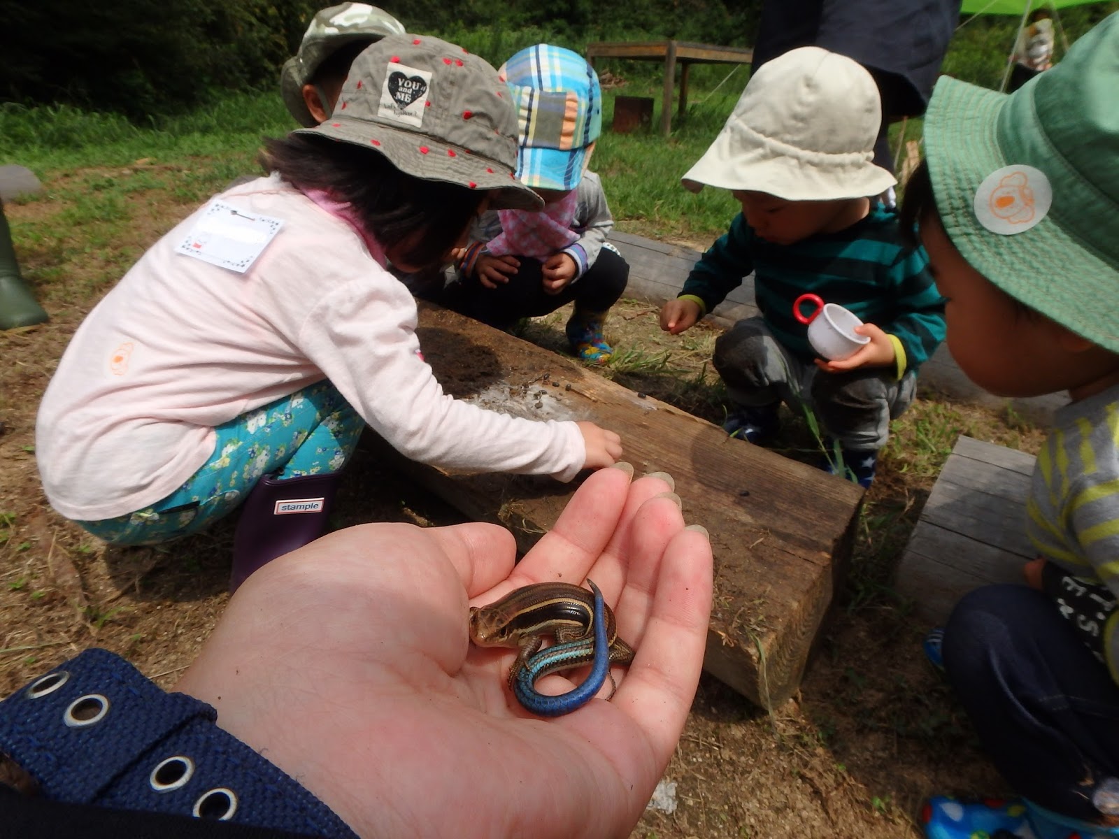 トカゲさんはお母さんの手の上でも気持ちよさそうにしていました♪