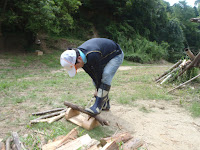 お父さんは薪割り!カーンカーン!と逞しく割っていきます(^ ^)