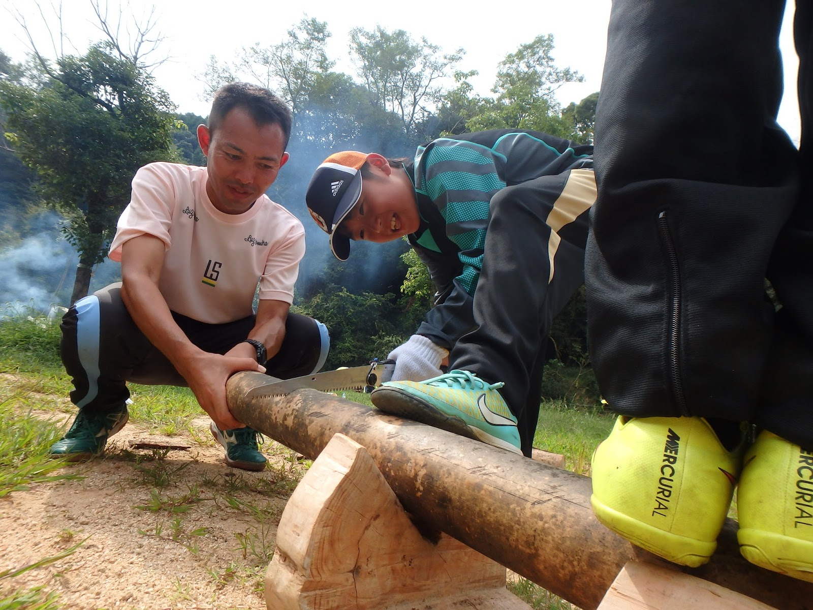 火起こしの後はチームごとに焚火に挑戦です。