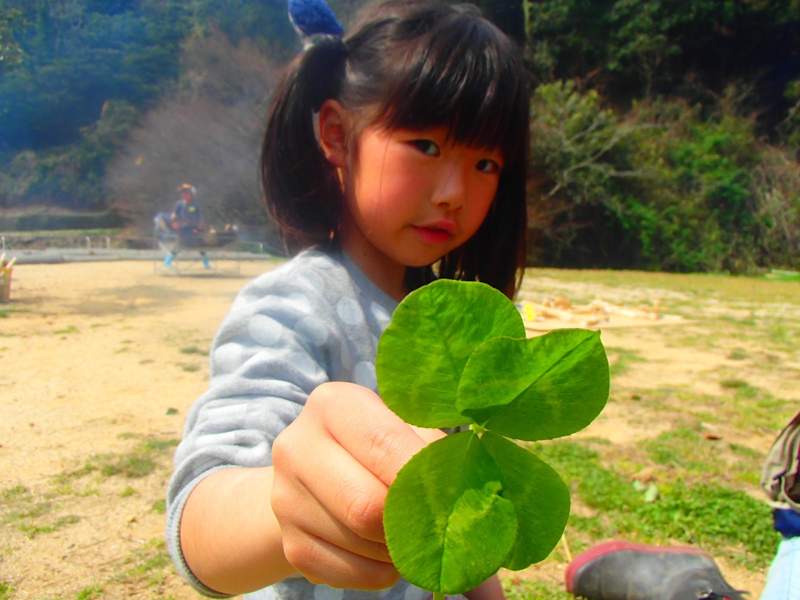 沢山あるクローバーの中から大きな四葉のクローバーを見つけたひとも^^