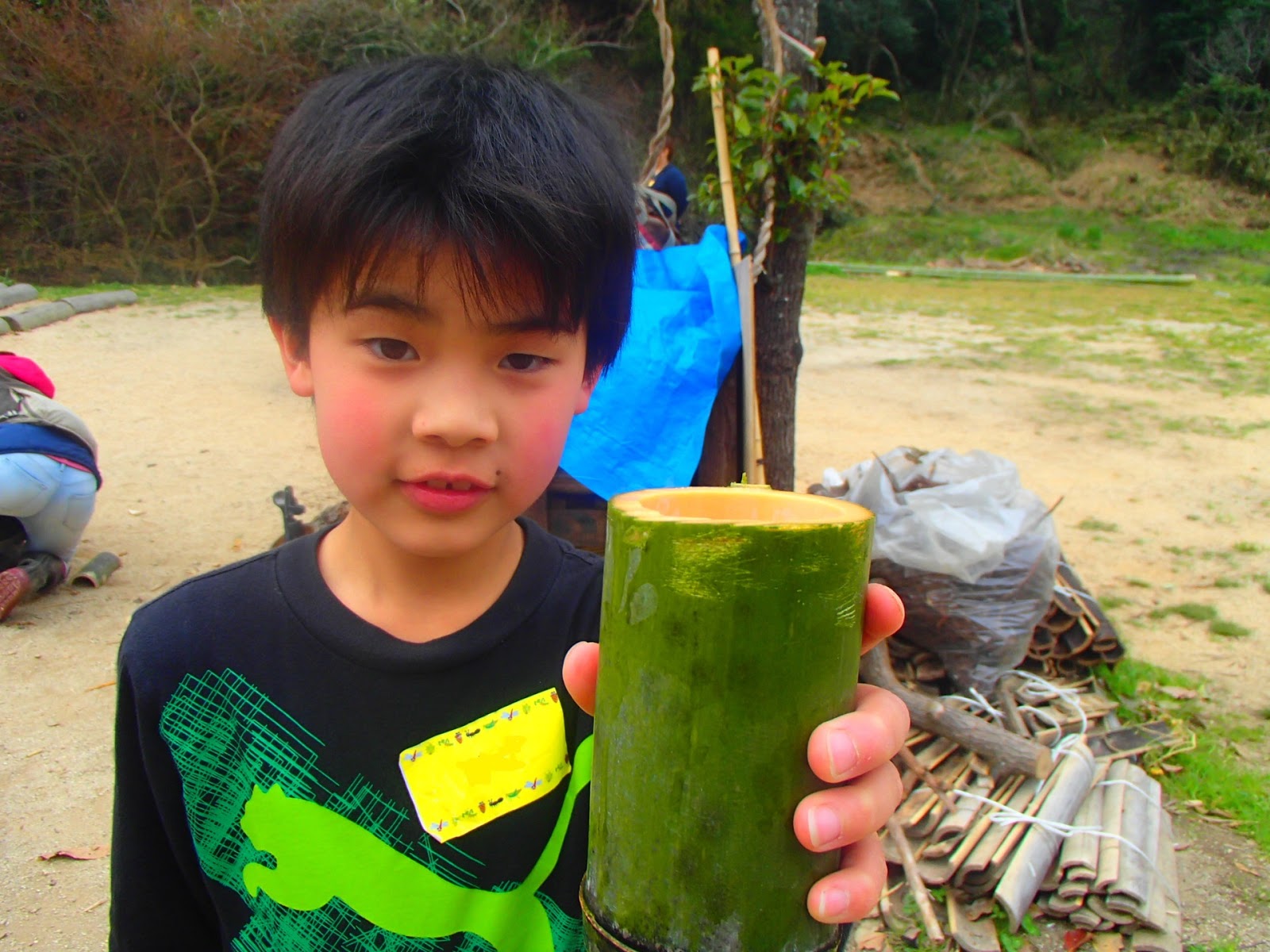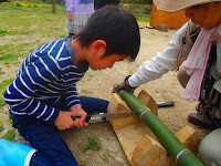 「なかなかきれんけどがんばる」やっと切れた竹で