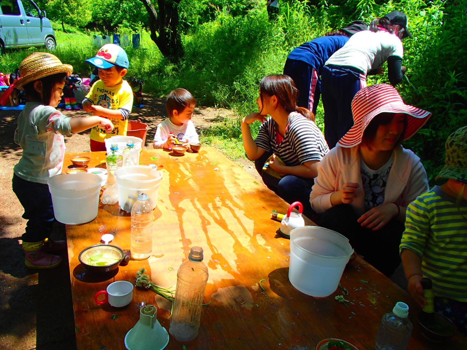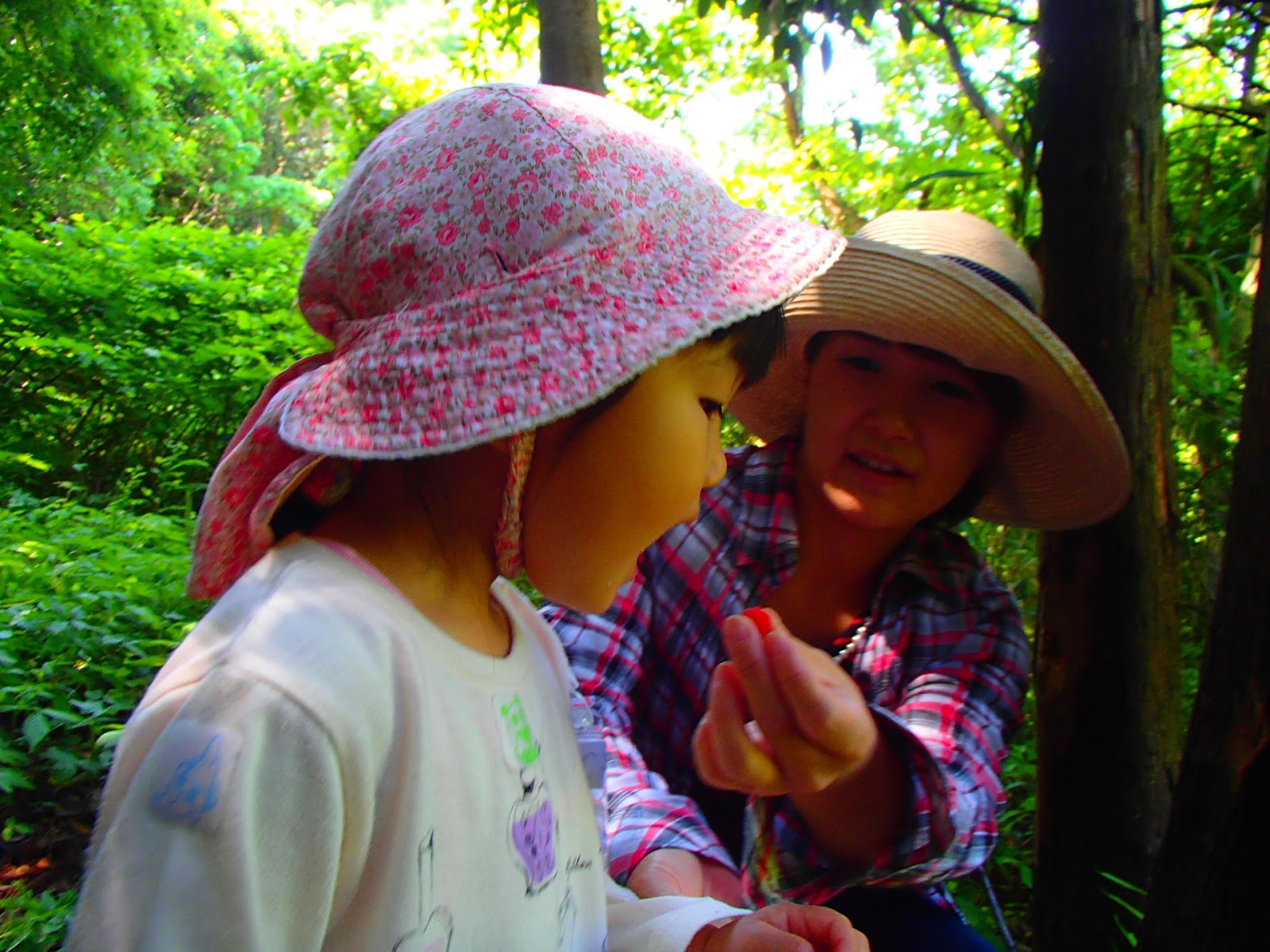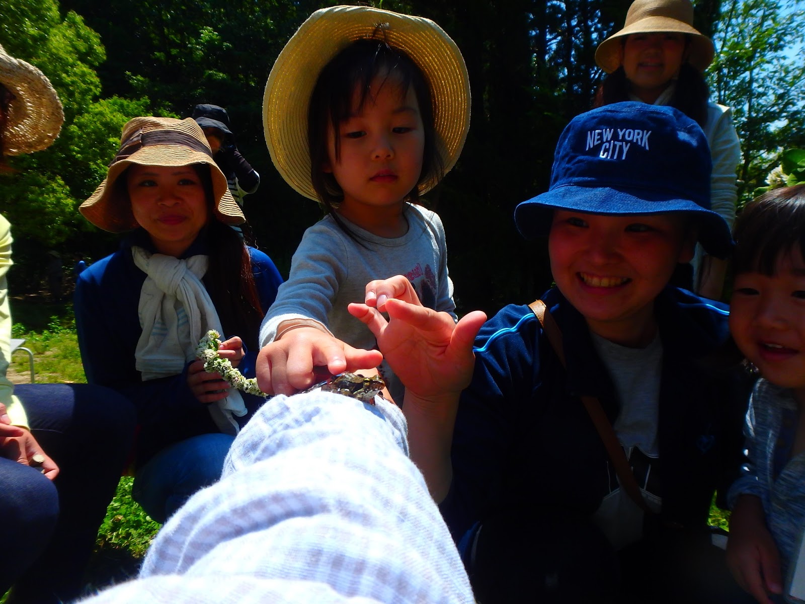 お母さんとお子さん、そして明短の学生さんと一緒に森へ。