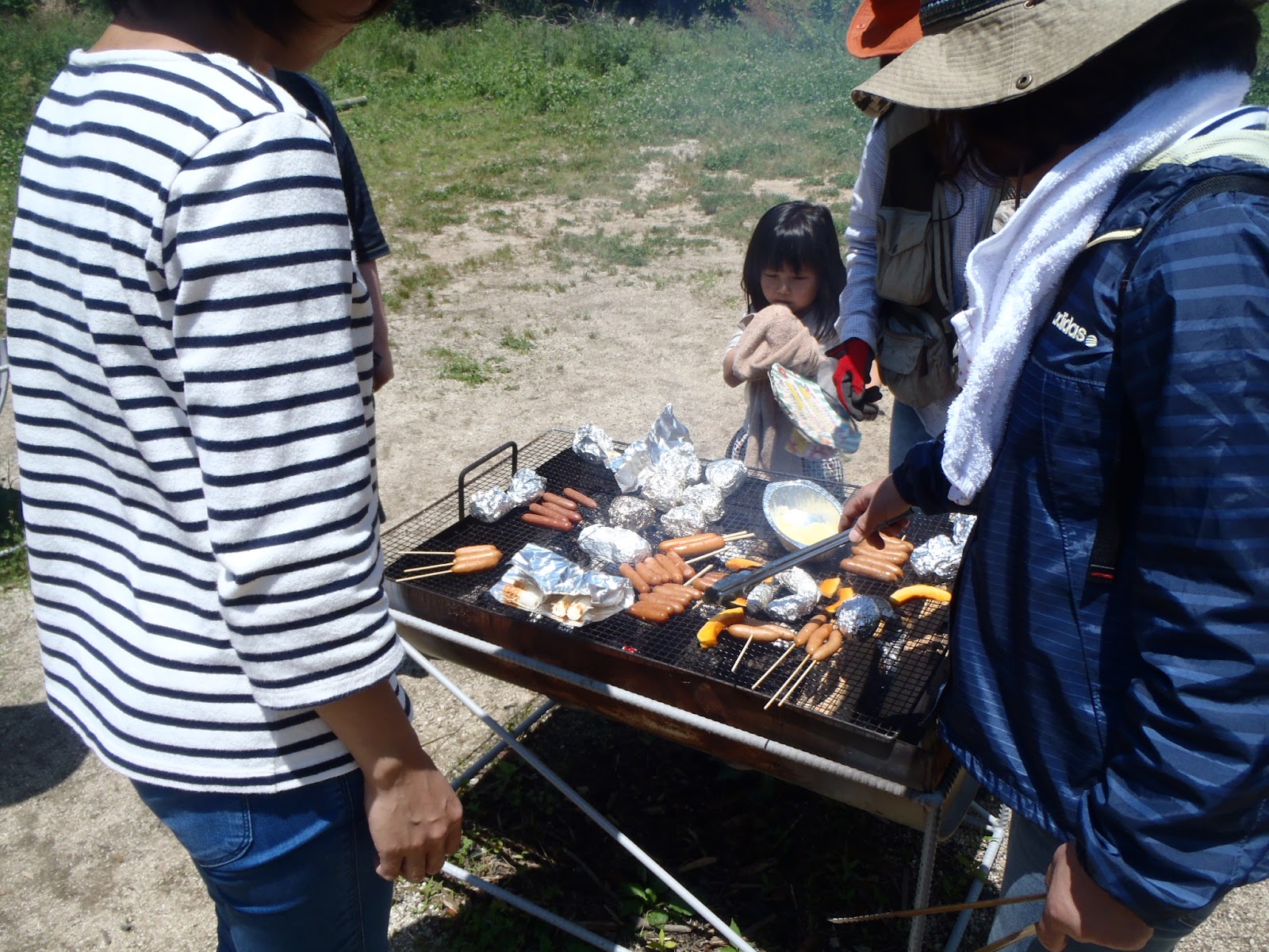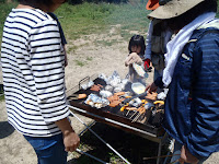 お昼ご飯のときにはたくさんの食材が火の上の網に並びました。