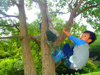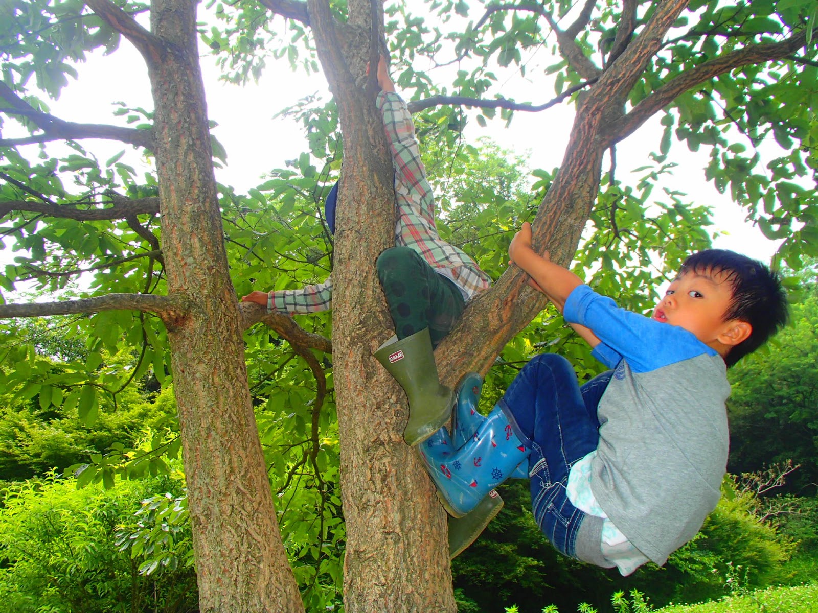 と木登りに挑戦したひとは木のてっぺんまで登って「ここすずしい!」