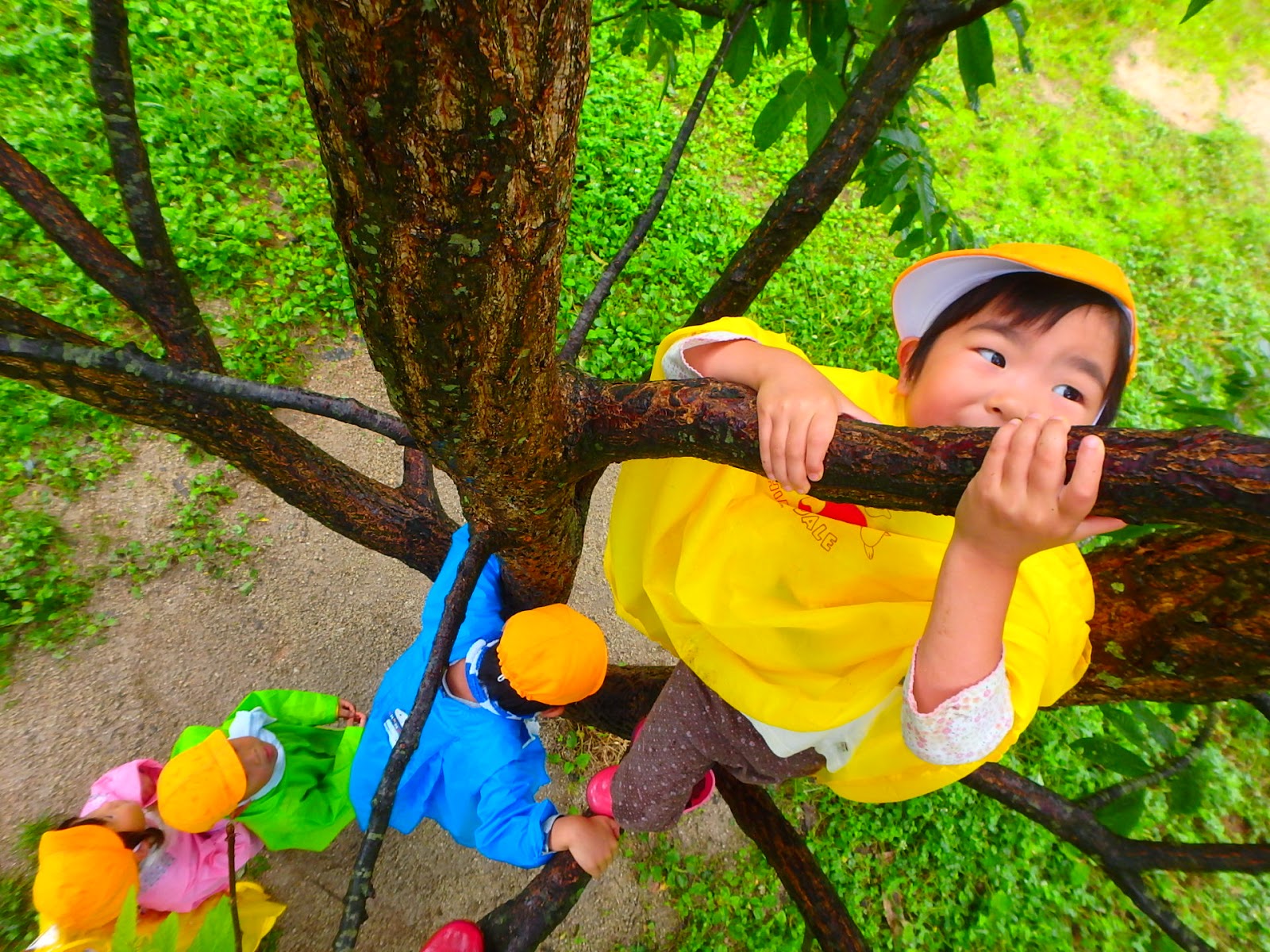 みんなでカラフルな合羽を着て、森へ出発!