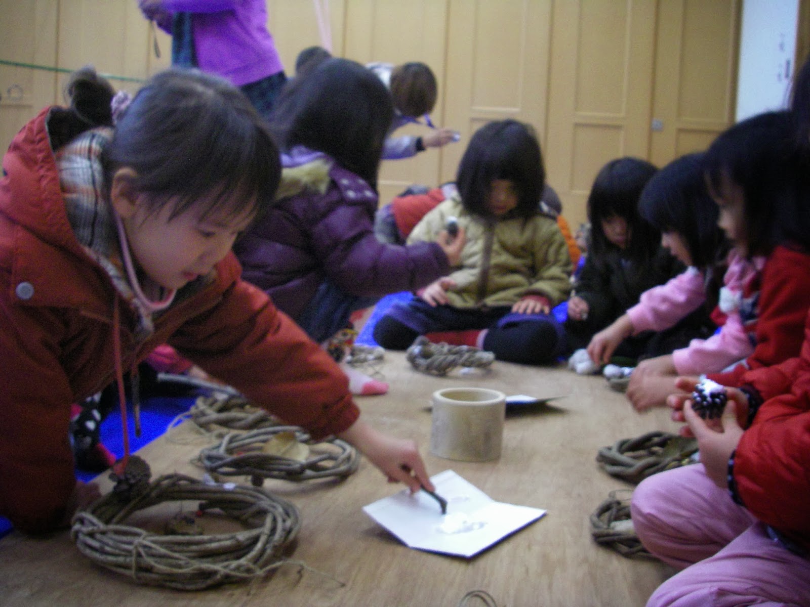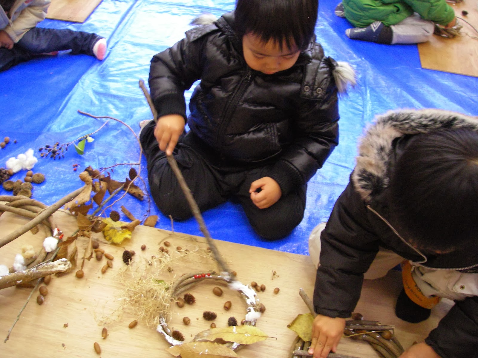最初、ボンドで手がベトベトになっていた子どもたち。
